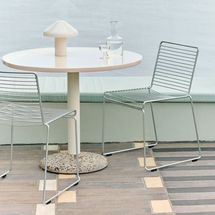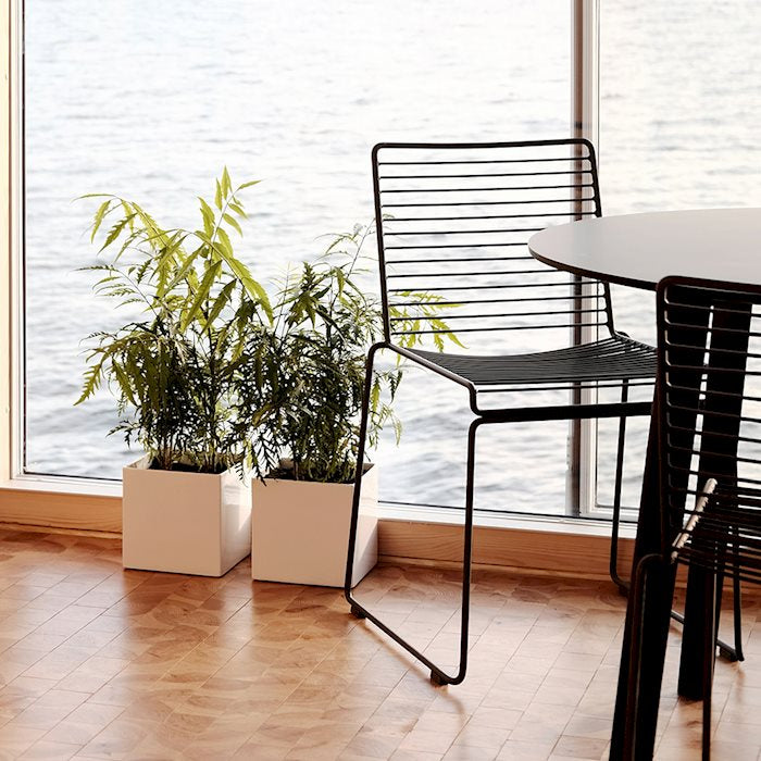 De Hee Dining Chair is vervaardigd uit verzinkt massief staaldraad, waardoor het roestbestendig is en perfect geschikt is voor gebruik buitenshuis. Deze stoelen kunnen aan elkaar worden gekoppeld in rijen voor conferenties, en het nieuwe kleurenschema houdt de Hee stoelen eigentijds en fris. Geniet van duurzaamheid en veelzijdigheid in één stoel, perfect voor zowel binnen- als buitengebruik.