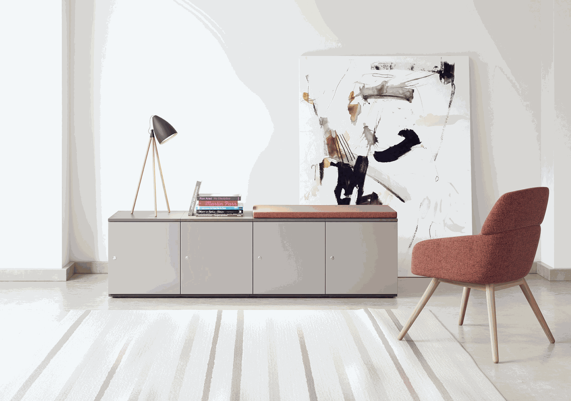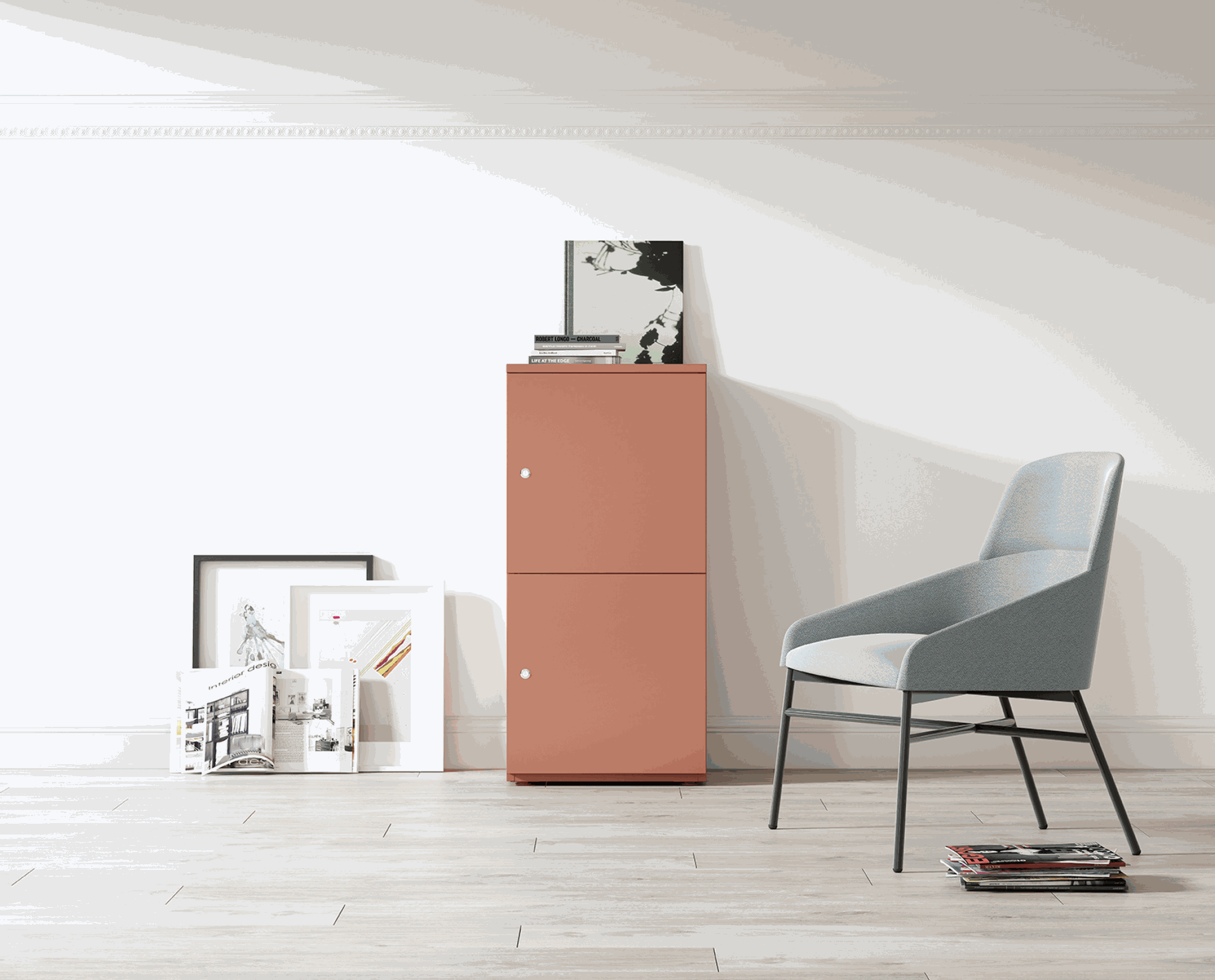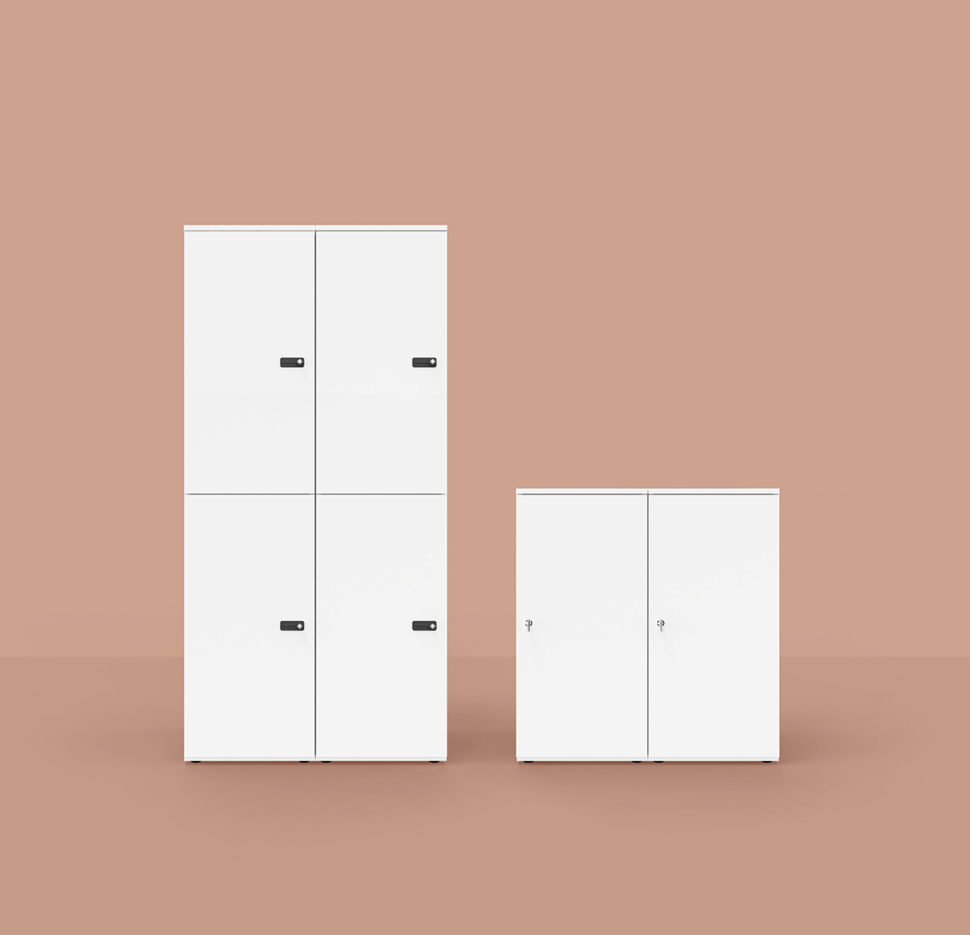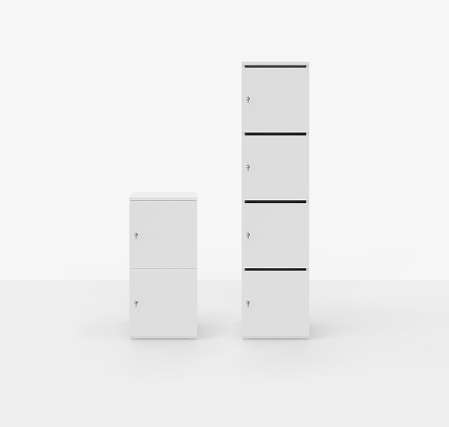 De uniekheid van het nieuwe Lockers-systeem zit in de combinatie van esthetische eenvoud en constructieve kwaliteit. Het maakt gebruik van een minimalistisch ontwerp en modulariteit om oplossingen te bieden voor dagelijkse behoeften, zowel voor kleine werkruimtes als grotere kantoren. Volledig aanpasbaar, waarbij de laminaatoppervlakken een hoofdrol spelen samen met verschillende toonafwerkingen, wat resulteert in een aantrekkelijke en dynamische combinatie van elementen. Vrijstaand en onweerstaanbaar mobiel.