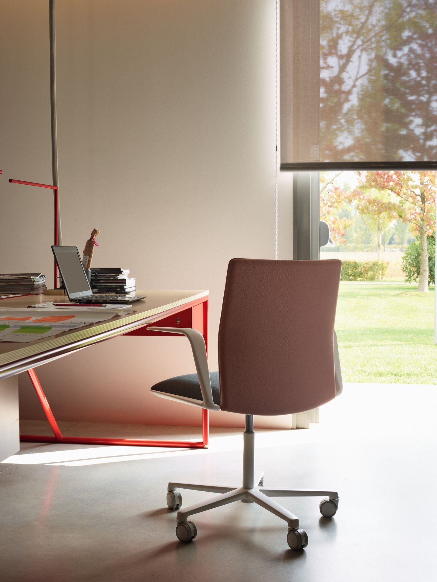 Kinesit is de allereerste bureaustoel van Arper, en combineert een licht en minimalistisch ontwerp met ultiem comfort en functionaliteit. Dankzij de geïntegreerde mechanismen in de zitting en rugleuning biedt deze stoel niet alleen een elegante en strakke uitstraling, maar voldoet hij ook aan alle technische eisen voor een optimaal gebruiksgemak.