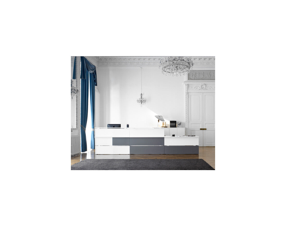 De Mahia counter van Famo is een stijlvol en functioneel ontvangstmeubel dat ideaal is voor verschillende professionele omgevingen. Het moderne ontwerp draagt bij aan professionele en uitnodigende uitstraling van de ontvangstruimte.