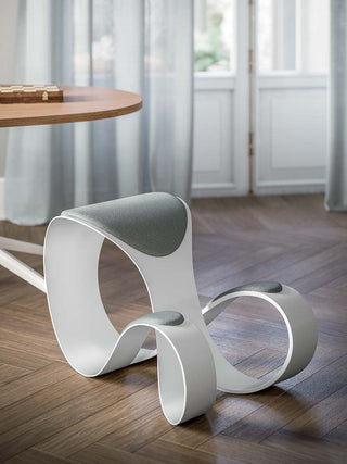 De zitting is subtiel afgewerkt met een zachte stoffering die comfort en elegantie samenbrengt. De stevige schaal biedt een comfortabele zitervaring, terwijl het unieke ontwerp zorgt voor een visueel wow-effect.