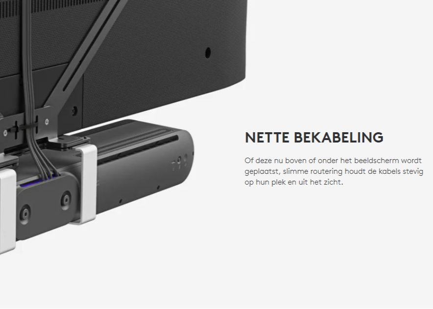 • Audio: speaker met microfoon, akoestische echo-onderdrukking en AI-ruisvermindering