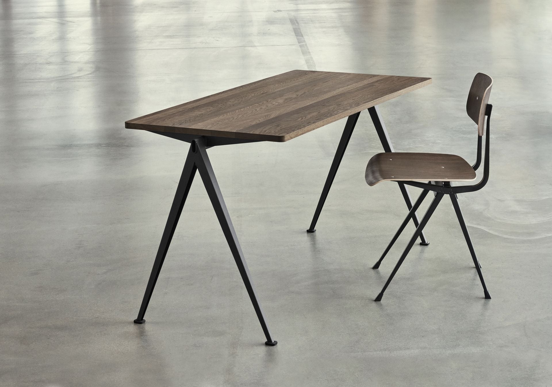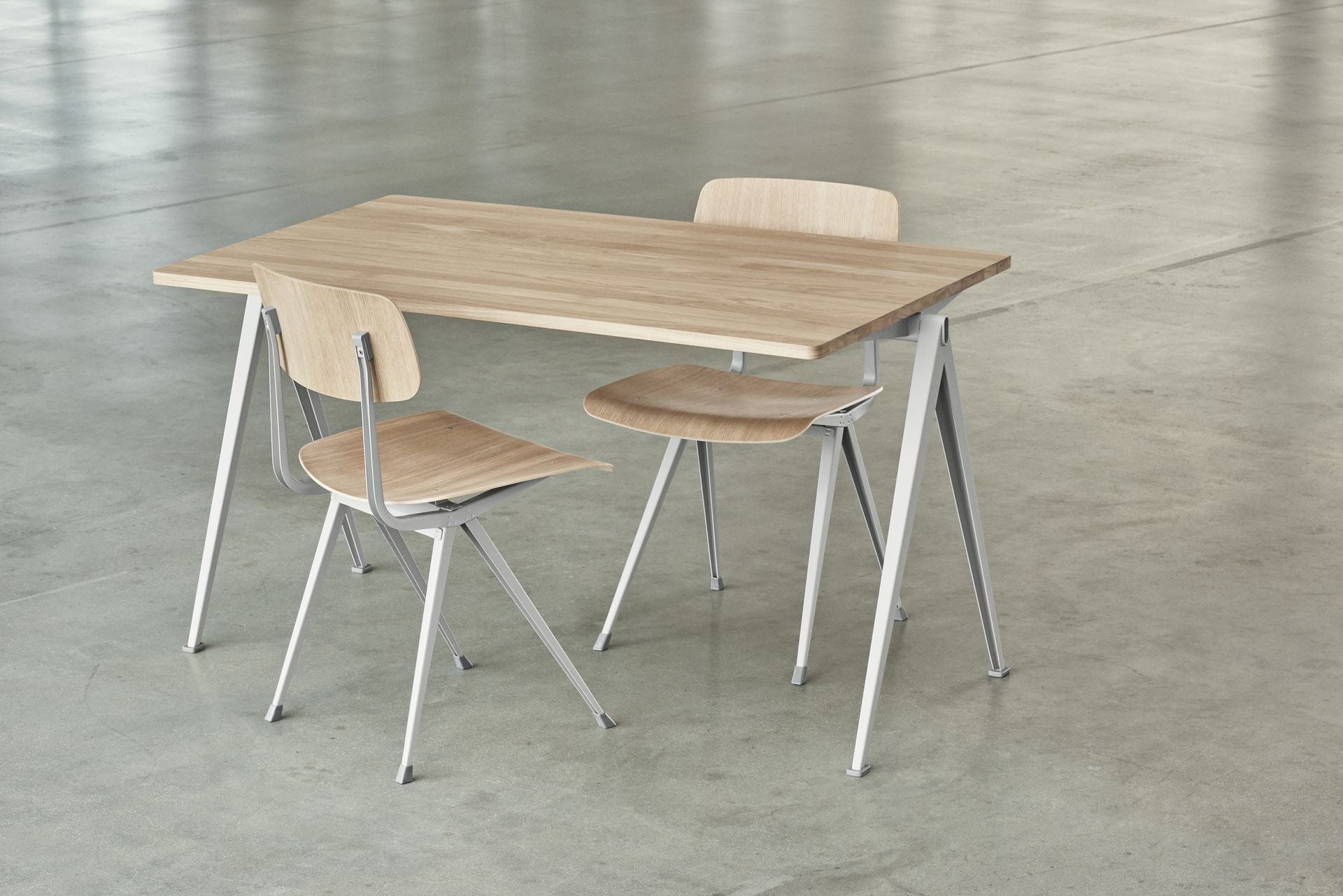 Ontworpen om functioneel, licht en sterk te zijn, heeft de Pyramid Table een stalen blad met een rechthoekig tafelblad van eikenhout. Oorspronkelijk gemaakt door Wim Rietveld tijdens zijn werk bij Ahrend in de jaren 1950, is de collectie uitgesneden staal opnieuw gelanceerd door HAY samen met Ahrend. De tafel is is geschikt voor gebruik in een breed scala aan onderwijsinstellingen, bedrijfsomgevingen en privéwoningen. Beide varianten zijn verkrijgbaar in verschillende houtafwerkingen en basiskleuren die kunnen worden gecoördineerd met de Result Chair.