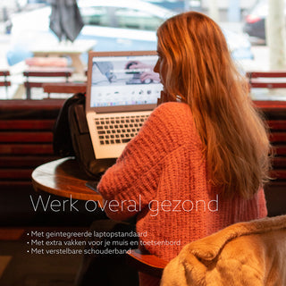 de R-Go Viva laptoptas is zo ontwikkeld dat je je laptop overal gezond kunt gebruiken. Met de geïntegreerde laptopstandaard in de tas creëer je een gezonde werkplek op elke locatie. De tas heeft een in hoogte verstelbare standaard zodat het scherm gemakkelijk op ooghoogte geplaatst kan worden.