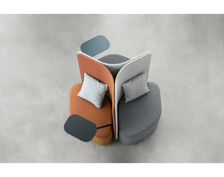 Een stijlvol zitmeubel dat dankzij zijn unieke vorm gemakkelijk te decoreren is. Het zitmeubel kan worden besteld: vrijstaand, met tafel, scherm of met zowel tafel als scherm.