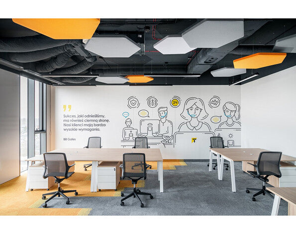 Beter werkcomfort dankzij verbeterde akoestische omstandigheden in de werkomgeving.