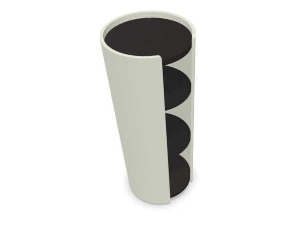 De Silo collectie van Famo is ontworpen in samenwerking met Alain Berteau. De producten staan voor functioneel gemak en modulariteit met behoud van eenvoudige en grafische vormen. De collectie integreert akoestische isolatie en veelzijdig en comfortabel gebruik. Het ladenblok uit de Silo collectie is een alleenstaand cilindervormig meubel op wieltjes met 4 laden.