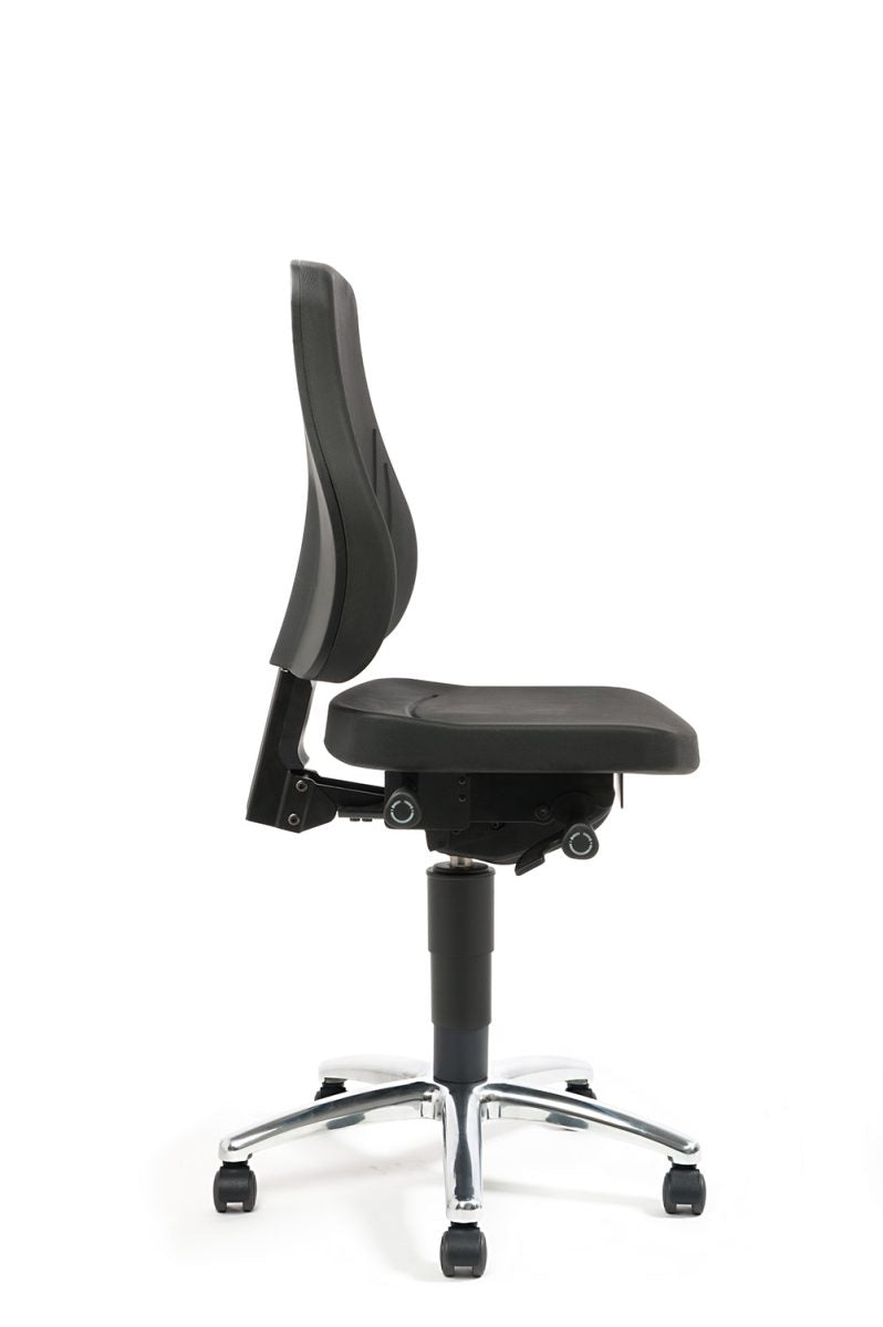 De ergonomische eigenschappen van een bureaudraaistoel gecombineerd met de robuustheid van een industriestoel in één zitoplossing.