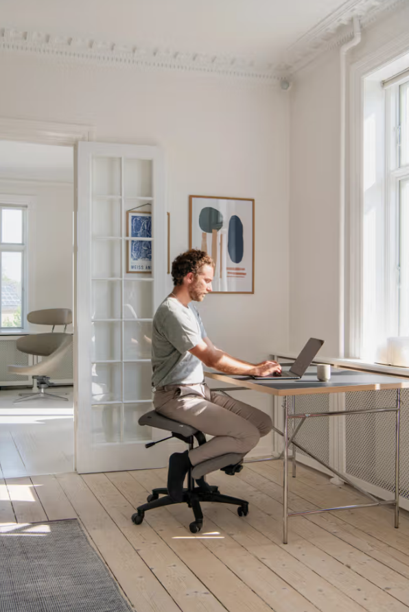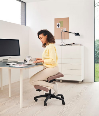 Het gebogen frame van gevormd multiplex stimuleert dynamische bewegingen, terwijl de geïntegreerde zitting en kniesteunen zorgen voor extra stabiliteit. De stoel is afgewerkt met hoogwaardig schuim en duurzame bekleding, ontworpen om jarenlang mee te gaan. Ideaal voor zowel je thuiskantoor als de professionele werkplek.