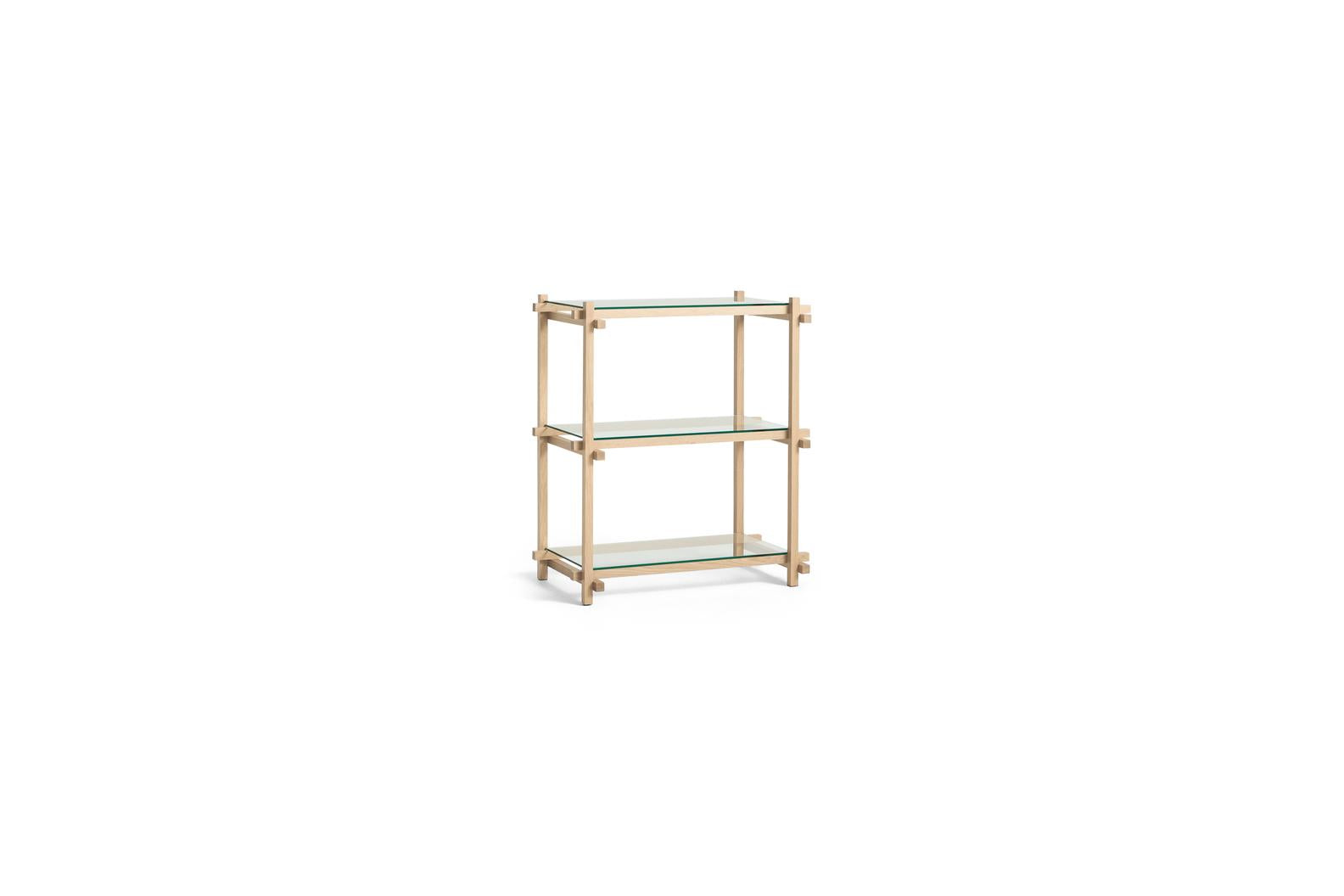 De Woody kast van HAY in deze compactere uitvoering straalt dezelfde architecturale eenvoud uit als de grotere variant, maar past perfect in kleinere ruimtes of als subtiel accent in een grotere setting. Het open frame van beukenhout en eiken in combinatie met glazen legplanken zorgt voor een luchtige uitstraling met een solide basis. De afwerking in Almond white en Smokey grey geeft het geheel een moderne en verfijnde look. Liever een andere kleur of materiaalcombinatie? Met onze configurator stel je de kast volledig af op jouw stijl.